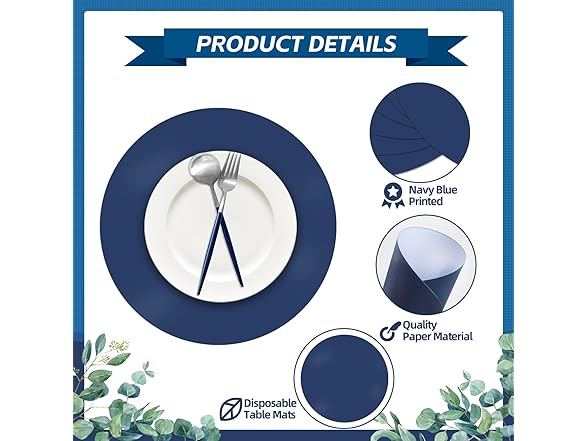 - Navy blue decor: our paper placemats are printed in dark blue color, which is fantastic and full of exquisite feeling, easy to match pink themed parties and events, will add a lively touch to your dining table