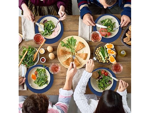 - Easy to clean: the blue place mats are stain resistant for protecting your table; just remove the placemats after party events, making it easy for table clean up