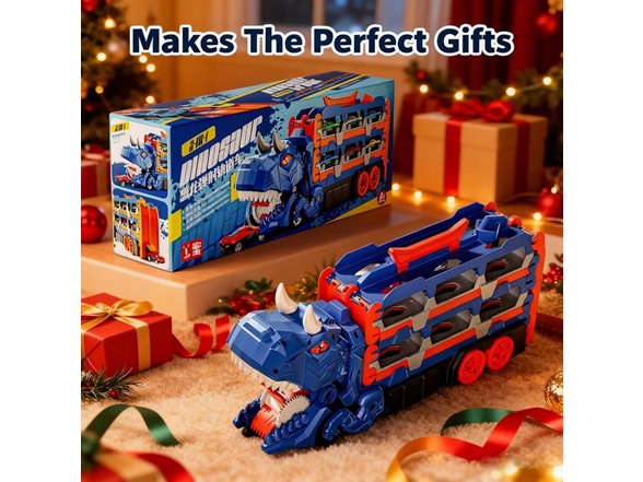 Unleash endless adventure with our Dinosaur Transport Truck Toy Set, the ultimate combination of dinosaurs and cars that kids love! This large, dinosaur-shaped truck instantly captures attention and doubles as a portable storage case for the 12 colorful mini sport cars included. Designed for kids ages 3–13, it sparks imaginative play — from thrilling dinosaur adventures to high-speed car races and daring rescue missions — all while encouraging creativity, storytelling, and problem-solving skills. As children push the cars, load the truck, and explore fun play scenarios, they naturally develop fine motor skills, hand-eye coordination, and focus. Built from safe, non-toxic materials with smooth, rounded edges, parents can rest assured their little ones are playing safely. The truck’s lightweight, durable design and easy-carry handle make it perfect for both indoor and outdoor adventures. Whether for a birthday, holiday, or special occasion, this unique dinosaur car set makes an unforgettable gift that combines fun, learning, and imagination in one roaring package!