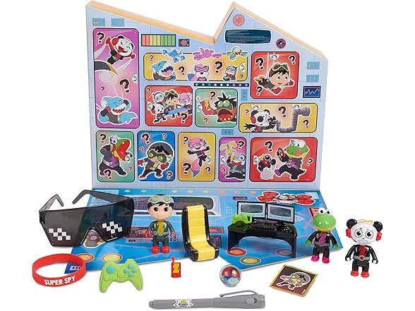 In the Box: Ryan's World Super Spy Ryan Golden Console, 13 Surprises Inside, Spy Pen Uncovers Secret Images on the Box