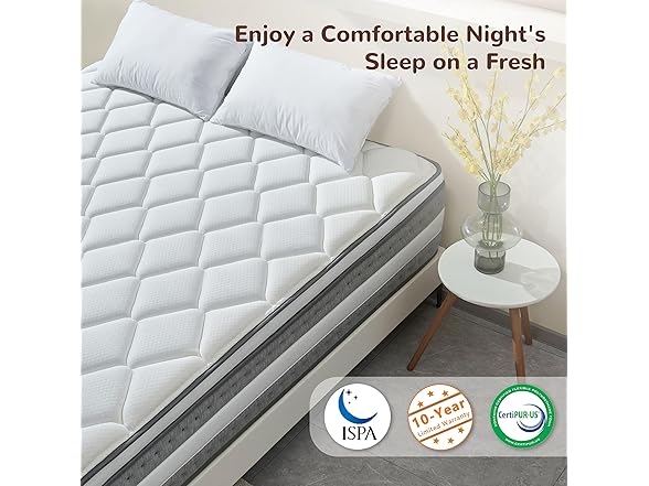 - Safe Materials & 10-Year Warranty - Sleep soundly on our CertiPUR-US and OEKO-TEX certified mattress, excludes harmful chemicals. It features hypoallergenic materials, and breathable construction for a cool, comfortable night. Includes a 10-year limited warranty for lasting peace of mind