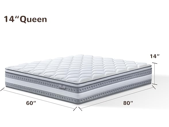 Naruchu Queen Mattress, 14 Inch Hybrid Mattress in a Box, Individually Wrapped Pocket Springs, Gel Memory Foam, Medium Firm Support, Pressure Relief, Motion Isolation, CertiPUR-US Certified, 60*80*14