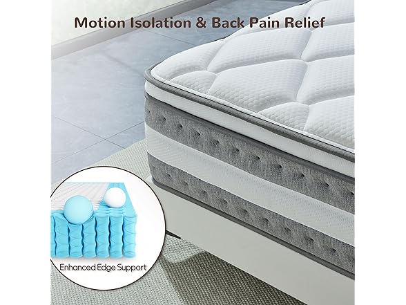 - Zero Partner Disturbance - Sleep undisturbed with our advanced motion isolation technology, proven to reduce motion transfer by 95%. The specialized foam layers and independent springs system work together to absorb movement, ensuring peaceful sleep for couples with different schedules or sleep patterns. Enjoy uninterrupted rest, even with a restless partner