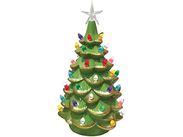 Nothing captures the joy of the holiday season quite like a brightly lit Christmas tree. With a cheerful colored light on each green bough and a sparkling star on top, this gold accented ceramic tree casts a warm glow that infuses the room with holiday spirit.