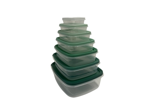 - 7 plastic containers and 7 lids.