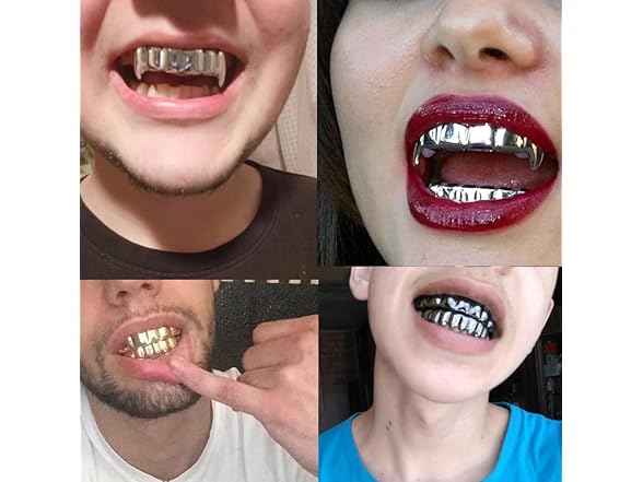 - Occasion--Teeth grillz can be used for Halloween costume, costume party, music concert and birthday party etc.(vampire teeth adult women,scarecrow vampire fangs,fangs for cosplay,mens vampire costume,rapper costume accessories,grillz teeth,joker grill) Wear it for a photo shoot, video shoot, to the club, or just for everyday use.