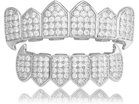 - Feature--The iced out grillz teeth for men women features Top and Bottom 6 teeth and are divided into no drill and bling CZ teeth.We adopt 18K Gold/Silver plated, premium brass metal and AAA+ sparkly bling cubic zirconia stones,Lead And Nickel Free, Eco-friendly.