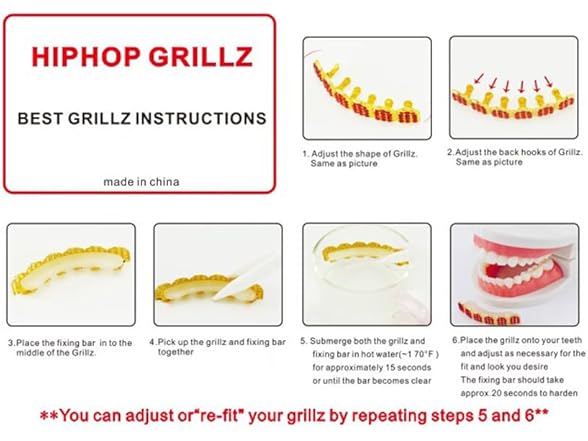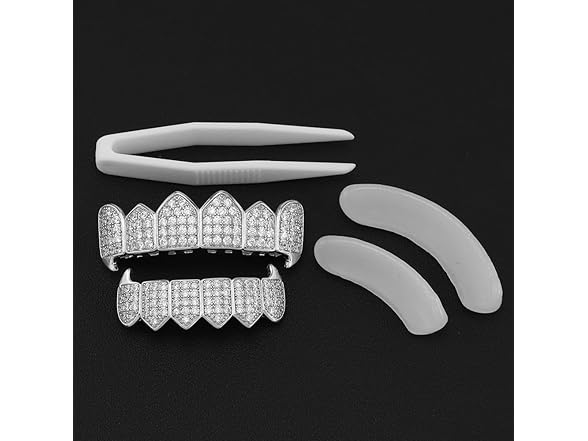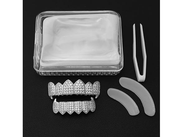 - Package--The no drill grillz come with 2 silicone bars(1 set)and the bling CZ grillz come with 2 silicone bars(1 sets).GOLD PINK and WHITE GOLD PINK only come with bottom grillz and 1 set silicone bars which look like so fashion and elegant for women.The Instructions for use are included in every package.