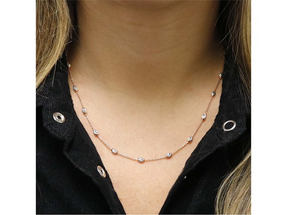 Yeidid Italian 18K Rose Gold Plated Sterling Silver 16 Inch 2 Tone Station Oval Moon Chain