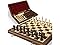 Premium Natural Walnut 15" Magnetic Wooden Folding Chess & Checkers Set- 2 in 1 Board Game with 3" King Staunton Pieces and 2 Extra Queens, Checkers, and Dust-Proof Storage Bag