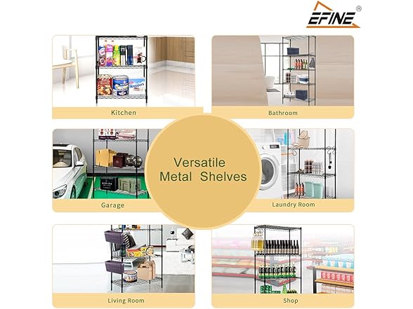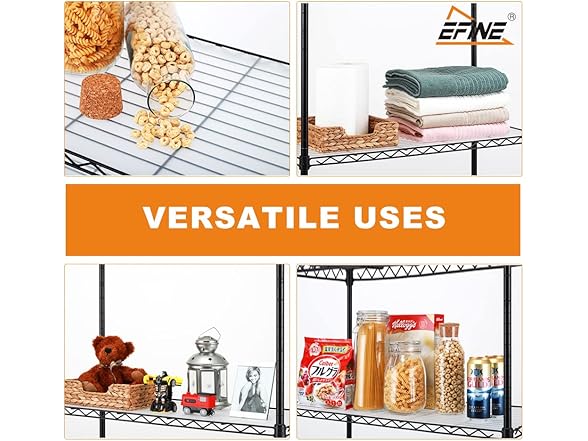 - ADJUSTABLE HEIGHT: Enjoy a completely customizable metal shelving unit. The build allows for height adjustments - giving you the freedom to adjust accordingly to your needs. Comes with easy adjustable clips to secure and stabilize each shelf. The multi-purpose shelf rack is perfect for garage shelving, kitchen storage, pantry shelving, and more.