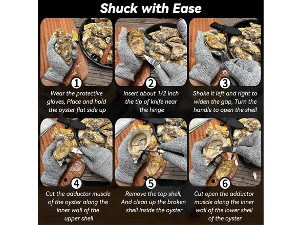 - 【Advanced Protection with Cut-Resistant Gloves】Our oyster shucking kit includes Level 5 gloves that offer superior cut, abrasion, and tear resistance, shielding your hands like armor. Food-grade and machine-washable, they pair perfectly with the oyster knife shucker for a secure oyster opener experience, though note they are not stab-proof or waterproof