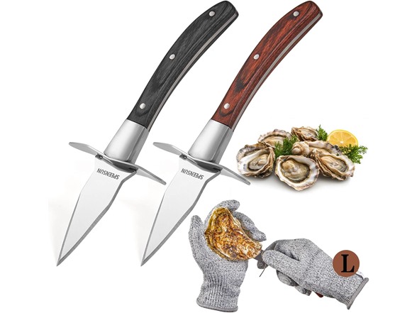 - This oyster opener conforms to ergonomics-shucker oyster knife designed specifically for left-handed or right-handed users, and oyster shucking set is flat and smooth, resistant to high-temperature oxidation and corrosion.With unilateral cutting edge, this oyster knife and glove set is convenient to open shell joint points.