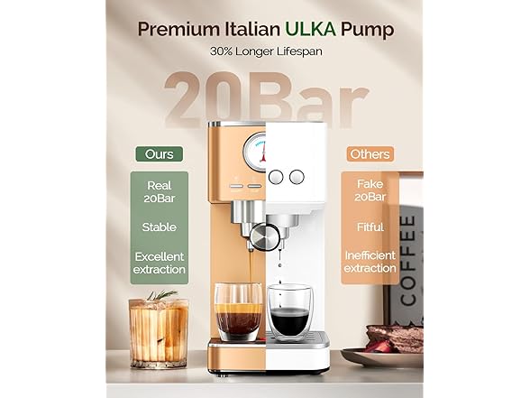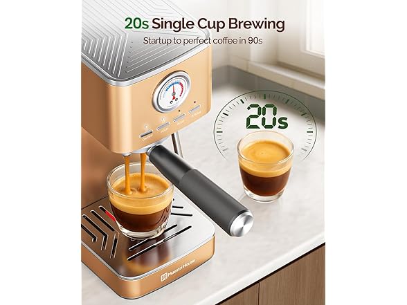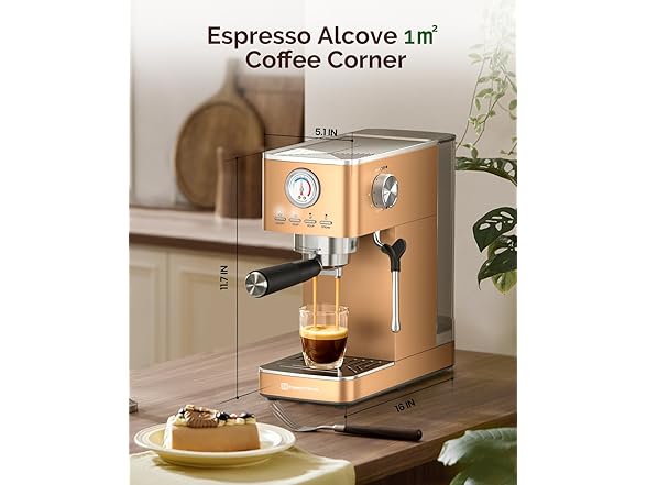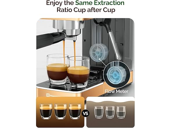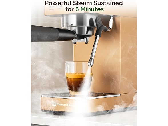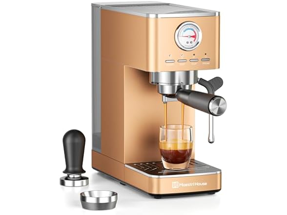 Maestri House 20 Bar ULKA Pump Espresso Machine, Compact Espresso Maker Built-in Flow Meter Steam Milk Frother, Stainless Steel Coffee Machine for Cappuccino, Latte, Rose Golden