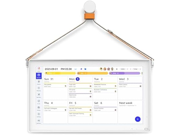 - More than A Digital Calendar: This 21.5-inch wall-mounted smart calendar serves as your family's central command hub, seamlessly integrating scheduling, chore chart, meal planning, to-do list, and digital photo display into a single sleek unit. Its brilliant FHD IPS touchscreen automatically switch between landscape and portrait modes to deliver crystal-clear visibility of family schedules whether mounted in kitchens, hallways, or home offices.