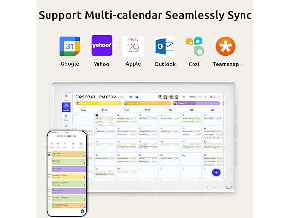 - Manage from Anywhere & Multi-calendar Sync: Through the Everblog app, you can remotely manage housework chart, rewards, meal plans, to-do lists and photo management. Plus, this digital calendar supports data synchronization with various popular calendar apps, such as Google calendar(with two-way synchronization), iCloud, Outlook and etc.