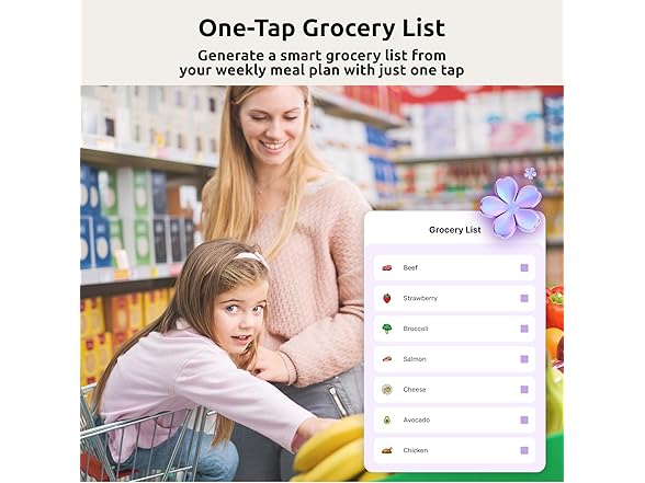 - Meal Plann with To-do List: Simplify family nutrition planning by using the meal planner and to-do list features—schedule balanced weekly meals ahead to break the monotony of repetitive dishes. Upload your custom recipes and arrange grocery lists based on your meal plan, keeping everything organized while freeing up valuable time for your home manager