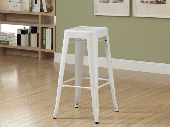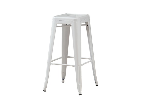 Bring together contemporary design and industrial styling with this metal café barstool. Built from heavy-duty steel, the stool has a stationary seat and multiple footrests for added comfort. The shiny white metal finish will brighten any room, allowing it to easily coordinate with your existing decor. Perfect for pulling up to a counter, bar, or high top table. Arrives fully assembled.