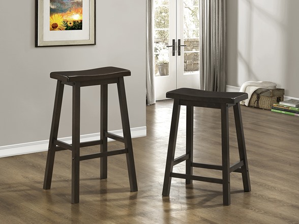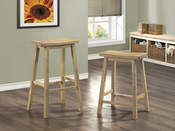 These barstools are perfect addition for kitchens, game rooms or for extra seating when company arrives. With a comfortable saddle seat and well positioned footrest, these classic stools will be the staple of many memorable evenings with friends and family.