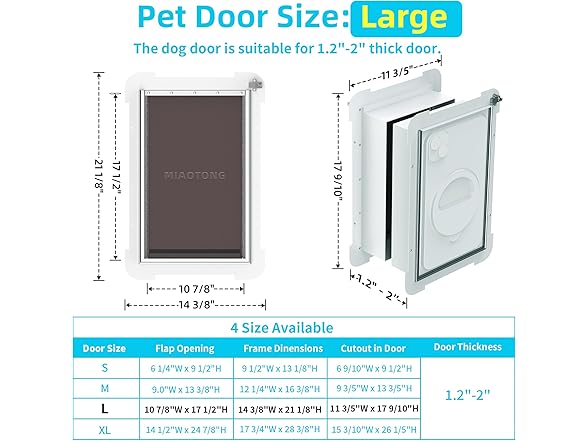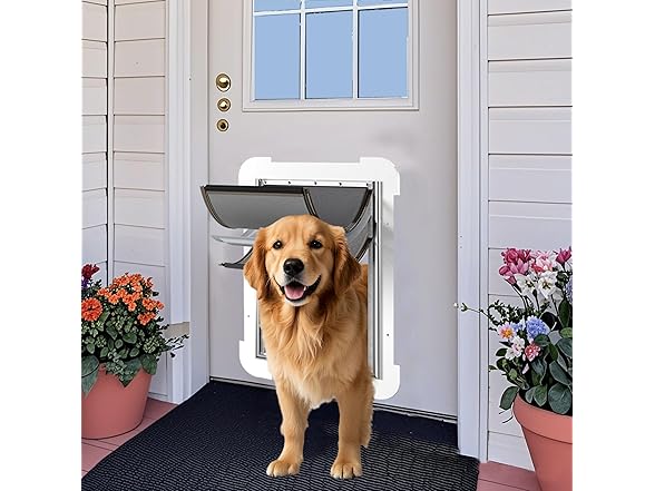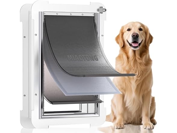 3-Flap Steel Large Dog Door for Exterior Doors with Sliding Lock Panel, Energy-Efficient Insulated Pet Door, Extreme Weather Doggy Door with Telescoping Tunnel, Never Rust(Pets Up to 100 Lb)