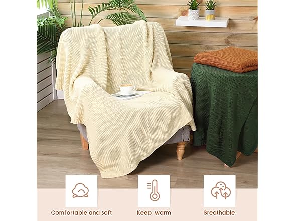 - Generously Sized for Versatility: measuring about 50 x 67 inches/ 127 x 170 cm, the chunky blankets are generously sized to meet various needs; They serve as a nice couch companion, a bedtime buddy, a warm layer for chilly movie nights, or even a good picnic rug; These knit throw blankets provide ample coverage and warmth, easily draping over you or your furniture