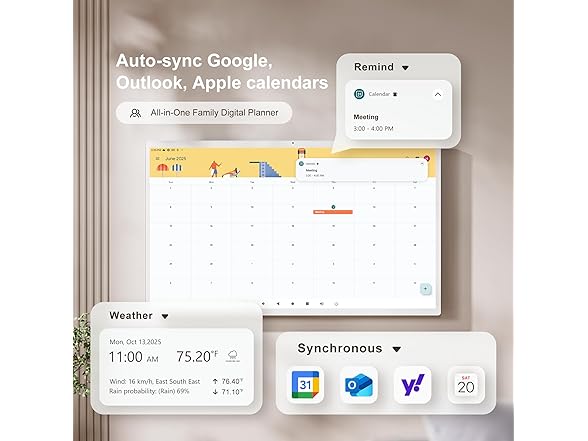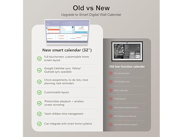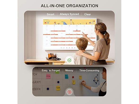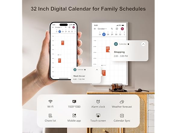 32" Digital Calendar, Wall-Mounted Full Touch Screen, Digital Planner with To Do List, Touchscreen Daily Planner for Family Schedules, Electronic Calendar for Smart Home, White