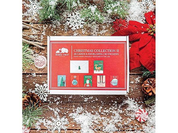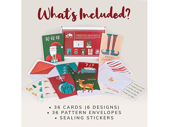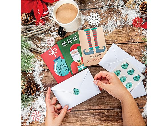 - With cute stickers: Some stationery doesn’t seal well, but ours does because we add extra envelope adhesive and 36 envelope stickers for firm closure and flair including: Happy Holidays, Greetings, Merry Christmas, Gingerbread, Sleigh and Xmas Tree! All packed into a sturdy greeting cards assortment box.