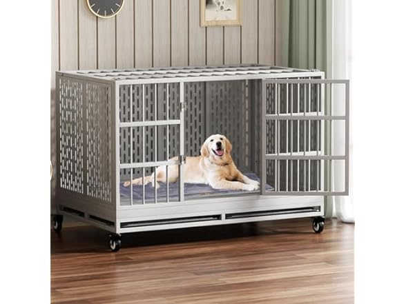 - Flexible Movement and Locking:This extra large dog cage comes with 4 high-quality 360° smart locking rolling wheels.You can easily move this metal dog crate to any place. The lock function prevents it from scrolling randomly.