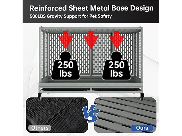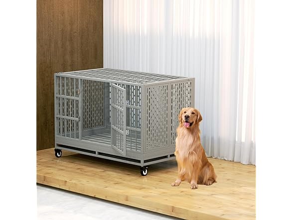 - Sturdy Metal: 48 Inches heavy duty dog crate uses a high-strength metal construction, much stronger than fine wire cages. This is a very sturdy large dog crate, even for strong and powerful dogs.Maximum load capacity up to 400 lbs