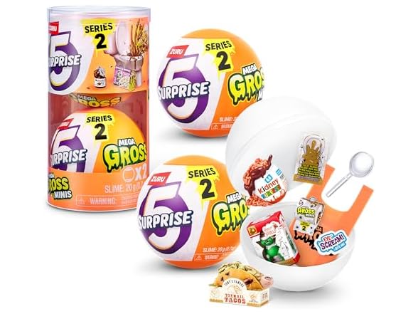 5 Surprise Mega Gross Minis Series 2 (2 Pack) by ZURU Boys, Mystery, Collectible, Mini, Parody, Slime