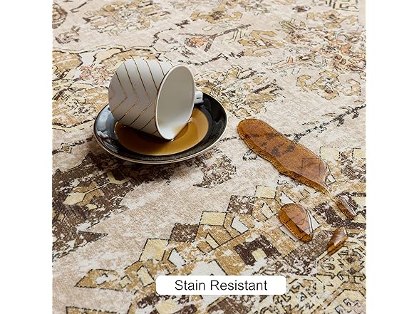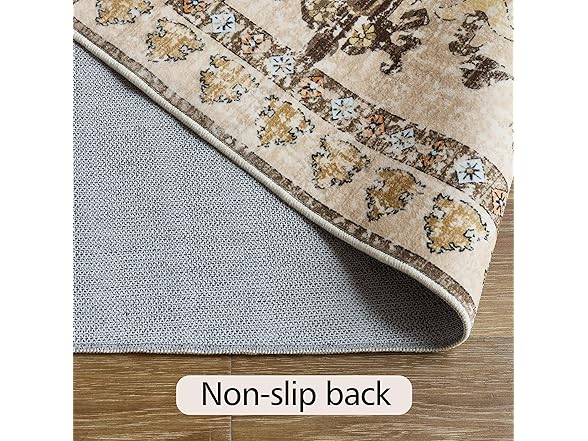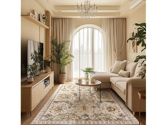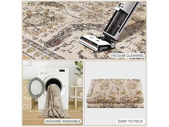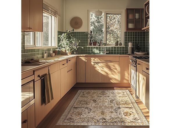 5x7 ft Washable Area Rug - Soft Boho Beige & Yellow Non-Slip Runner for Indoor, Kitchen, Bedroom, Living Room, Kids Room, Entryway