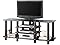 This vast, modern TV stand features spacious shelving and accommodates TVs up to 65 inches. Its multi-purpose shelving provides ample storage space for your components and accessories. Constructed of powder-coated metal legs with a scratch-resistant finish securely fastened to tempered safety glass shelves. This sturdy, durable design is a perfect addition to your entertainment room.