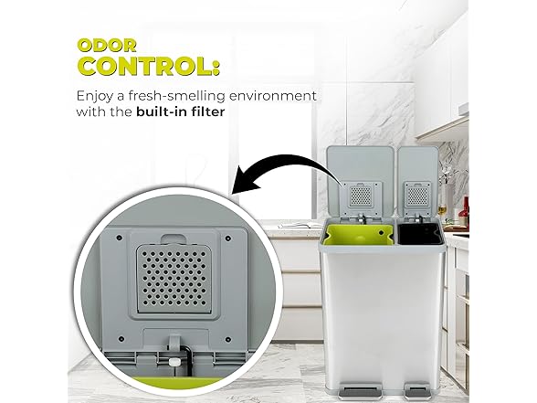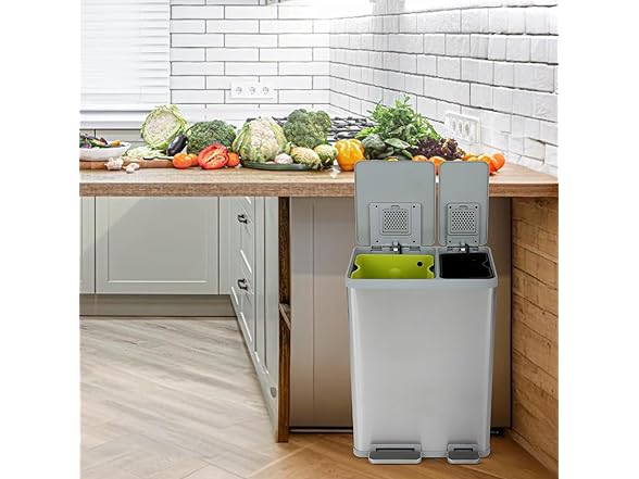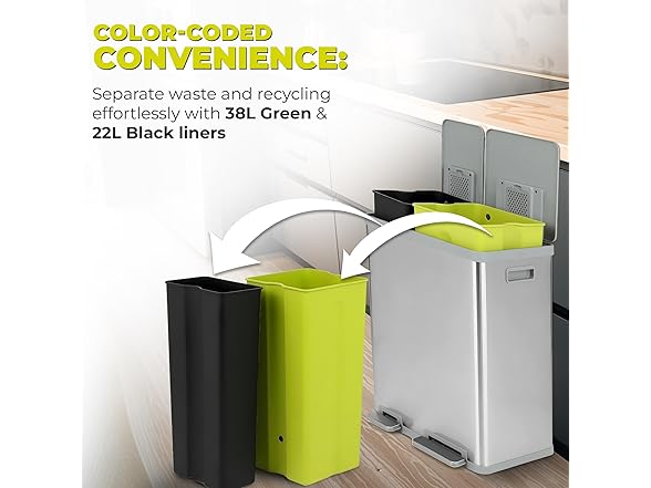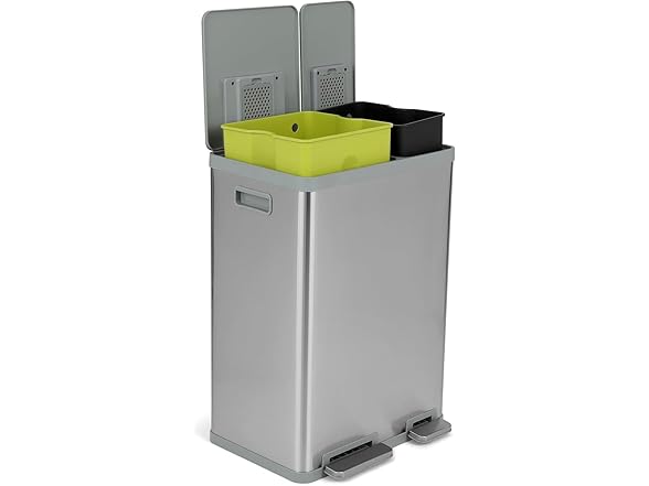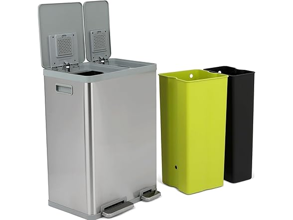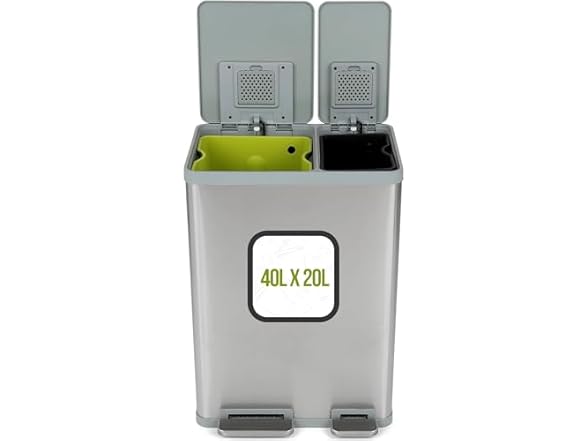 60 Liter / 16 Gallon Rectangular Hands-Free Dual Compartment Recycling Kitchen Step Trash Can with Soft-Close Lid, Brushed Stainless Steel (40L + 20L Capacity)