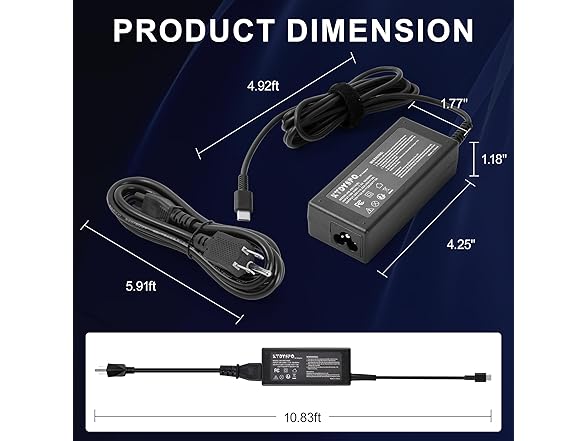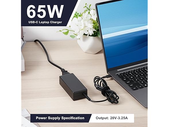 65W USB-C Laptop Charger Compatible with HP EliteBook, Pavilion, Envy, ProBook, Spectre x360, Chromebook, Fast Charging with 10.83ft Cord