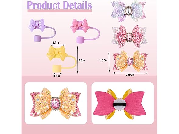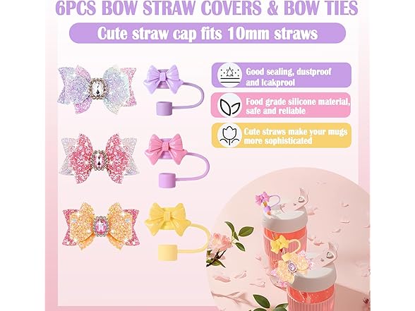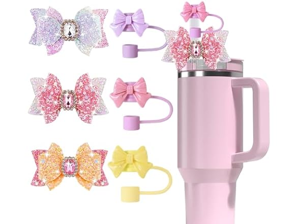 6Pcs Bow Stanley Straw Cover, Bow Ties Stanley Cup Decor, Silicone Stanley Cup Straw Topper, Straw Covers Cap for 30&40 Tumblers, Reusable Straws Cute Tumbler Straw Topper Accessories