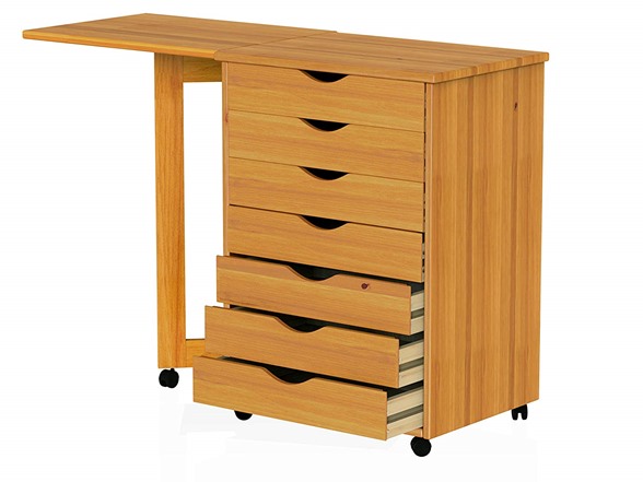 • (1) 7 Drawer Gate Leg Roll Cart Desk