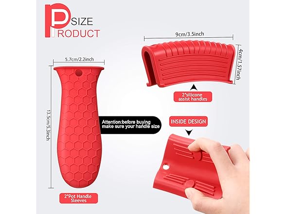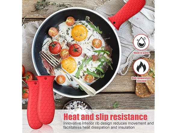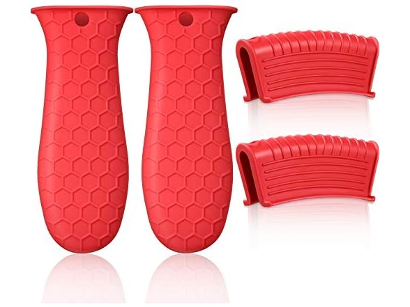 - Non-slip design: pot holders covers and heat resistant pot holder sleeves can fit your cast iron frying pan snugly; Anti-slip texture and internal silicone ribbing on the handle ensure security of moving heavy hot pans, which can effectively prevent falling; They are easy to slide on and off, can be stayed securely in place while using