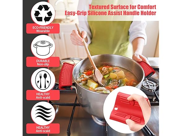 - Package contains: 2 pieces silicone hot handle holders and 2 pieces silicone assist handle holders, enough quantity for your daily use, replacement and sharing, classic color helps you decorate and find easily