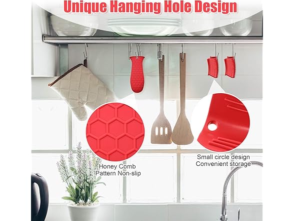 - Convenient storage: hanging hole design is easy to hang and space saving; Please store them in a clean and dry place that keep away from direct sunlight; The pot holders handle sleeve sets are nice accessories for cast iron skillets