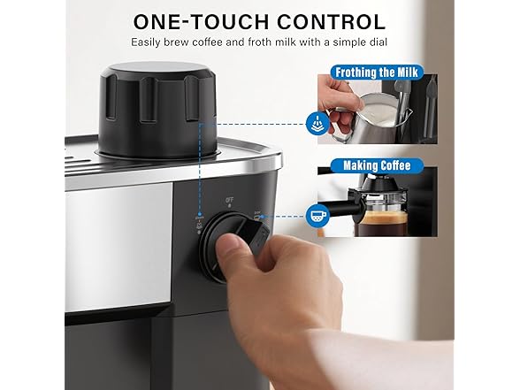 - One-Button Operation & Customizable Strength A single button controls both coffee brewing and milk frothing for ultimate ease. For optimal performance, allow the machine to preheat for approximately 3 minutes after turning it on. Adjust the coffee grounds to your taste: use less for a milder drink or more for a strong espresso. It works perfectly with fine coffee powder, suitable for everyone from beginners to pros