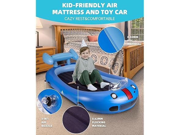 - Warm and Thoughtful Gifts: Buying gifts can be no easy task. But this 2 in-1 Kids Blow Up Mattress for can make gifting easier than ever. Christmas Birthday Gifts for Girls Boys 3-12,Cool Racing Car Design with 16.5inch Avocado Plush toy – Make bedtime exciting! This inflatable kids’ travel bed features a vibrant racecar design, allowing little ones to feel like they're sleeping in their own mini sports car. Paired with an adorable avocado Plush toy, it adds extra comfort and fun, making it the perfect gift for car lovers.