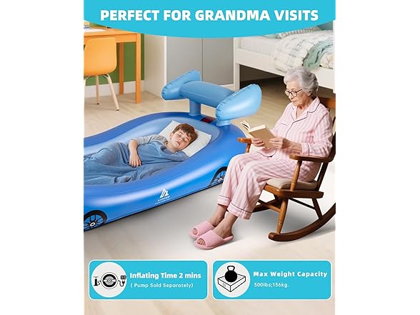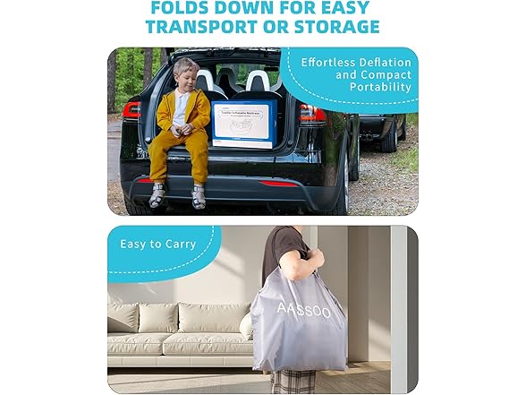 - Quick Inflation & Compact Storage – Designed for ultimate convenience, this blow-up toddler bed inflates in minutes using any standard air pump (not included). The lightweight and compact design makes it easy to carry, store, and set up anywhere. AASSOO inflatable toddler air mattress is the perfect travel companion for parents looking for a comfortable and portable sleep solution for their children.