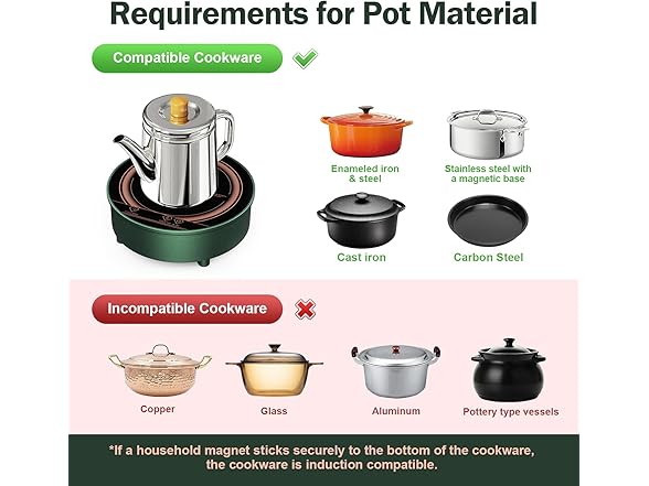 - Portable and Compact induction cooker: MOKA POT NOT INCLUDED ! Mini induction cooktop, its small size makes it especially suitable for parties, campling, travel, making tea, coffee, and RVs. SINCE THIS MINI INDUCTION COOKTOP HAS A MAXIMUM POWER OF 700W, IT IS ONLY SUITABLE FOR COOKING SMALL PORTIONS. PLEASE CONSIDER THIS CAREFULLY BEFORE PURCHASING.