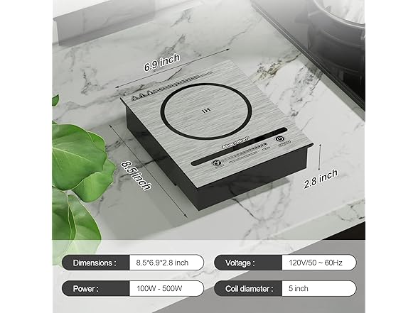 - 【CONTROL MODE】This low-power mini induction stove features sliding touch control with 5 power levels ranging from 100W to 500W. Please place induction-compatible cookware on the cooktop before turning it on.