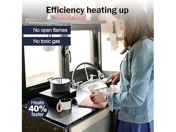 - 【FAST & SAFE】FCC-certified mini induction cooktop with up to 500W of power. Heats 0.8QT of water from 79°F to boiling in just 15 minutes. Provides stable, even heating without cycling or pulsing. Its high heating efficiency makes it faster than a traditional electric burner, hot plate, oven, or cooktop stove at the same power level. For safety, the unit automatically stops heating when overheating is detected or when the cookware is removed.