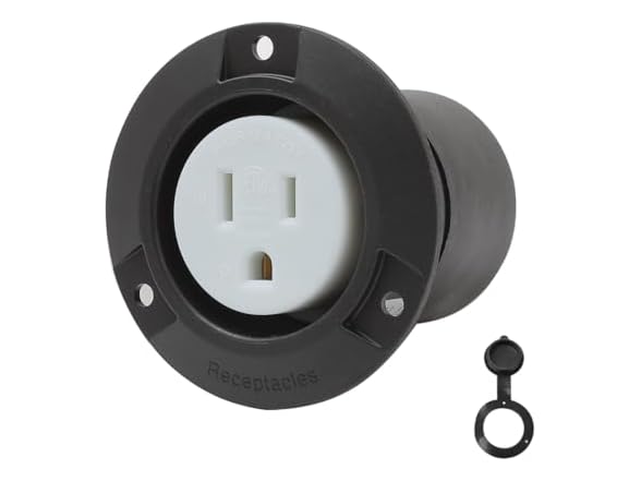 Nema 5-15R Flanged Outlet with Waterproof Cover, 5-15R 15A 125V Household Power Outlet, Compatible with Nema 5-15R,Black Color