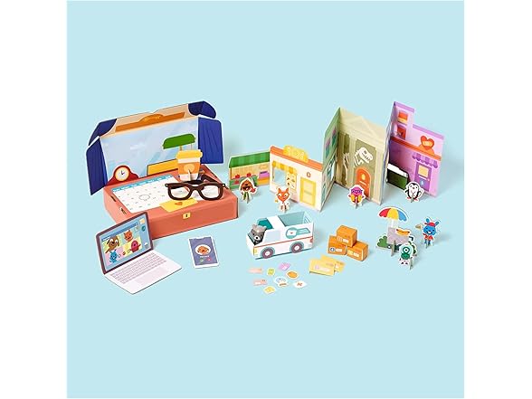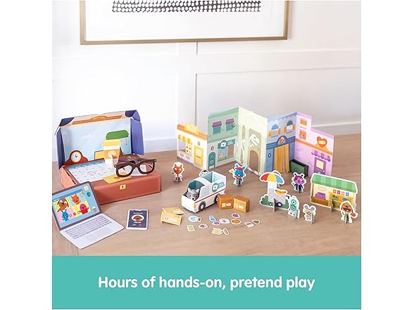 - CITYSCAPE ADVENTURE & TOY FIGURE: Play with inside & outside scenes that are rich in detail and deliver packages to all the citizens of the city, with a 2.5-inch Kiki the raccoon figurine & mail truck