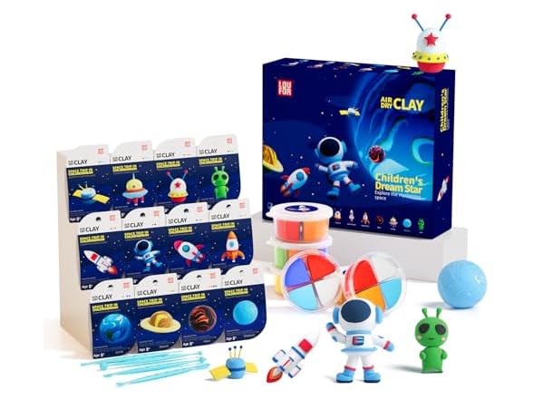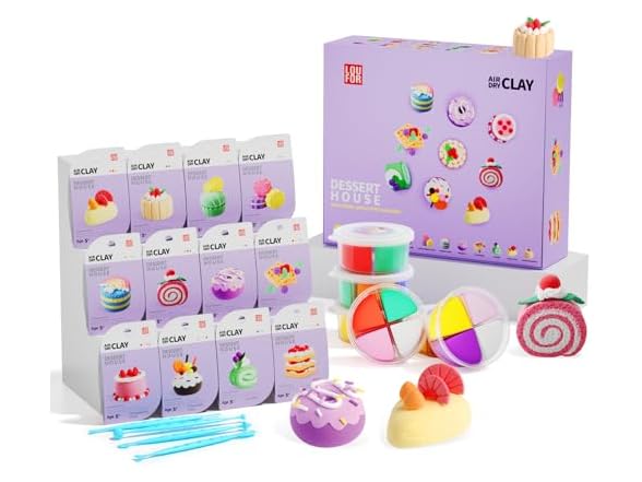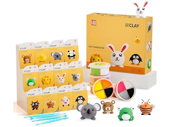 - 【LOUFOR Air Dry Clay Kits for Kids】- This modeling clay with 4 sculpting tools and project tutorial, the airdry clay kit is packaged in 12 boxes, each cans has 4 compartments filled with different colors, enough clay to shape 12 theme models, allowing children or adults to create endless colorful sculptures and artworks.