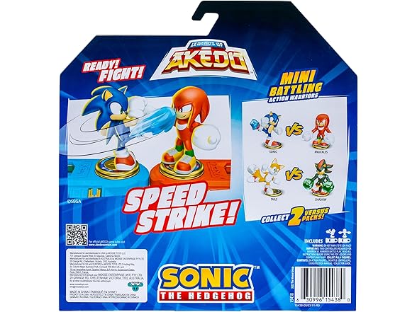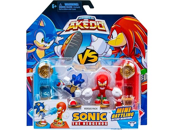 AKEDO Sonic The Hedgehog Versus Pack with Sonic and Knuckles, Mini Collectable Battling Action Warriors, 2.25 Inches Tall, Contains 2 Battle Controllers