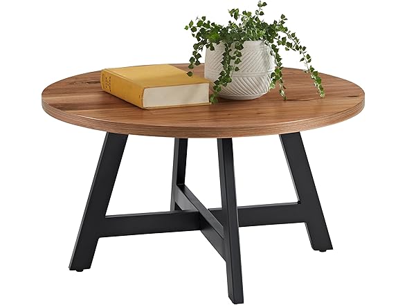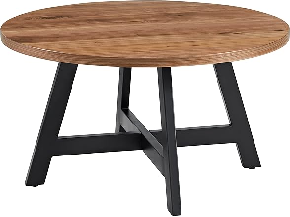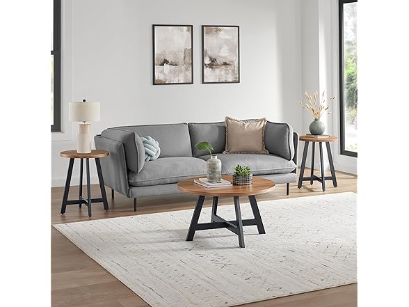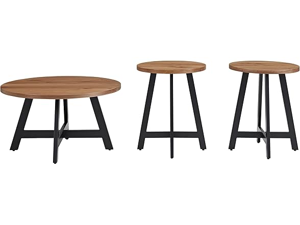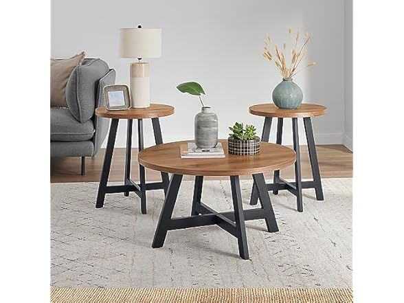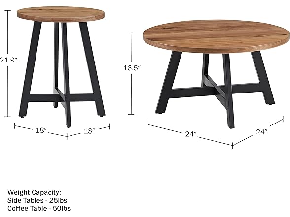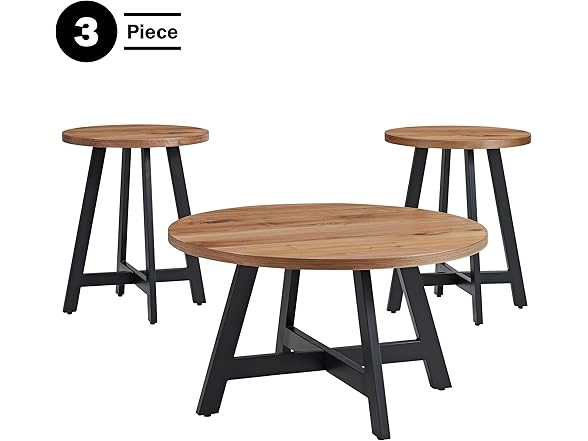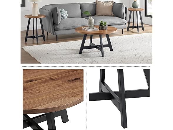 Alaterre Furniture 3-Piece Coffee Table Set - Industrial Round Coffee Table and 2 Side Tables - for Living Room, Apartment, or Dorm Room (Walnut)